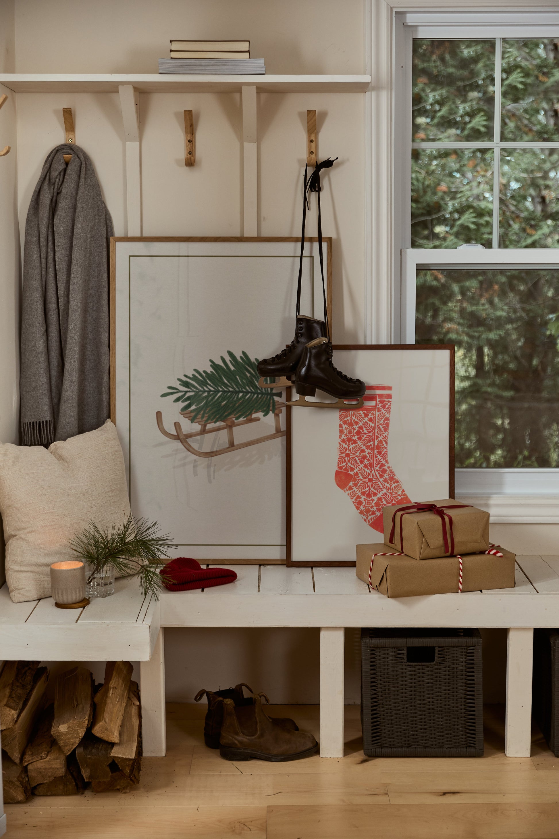 This artwork would look wonderful in an entryway or mudroom, where its subtle nod to winter activities could welcome guests. It could also add a touch of seasonal charm to a kitchen or dining area, especially during the colder months.