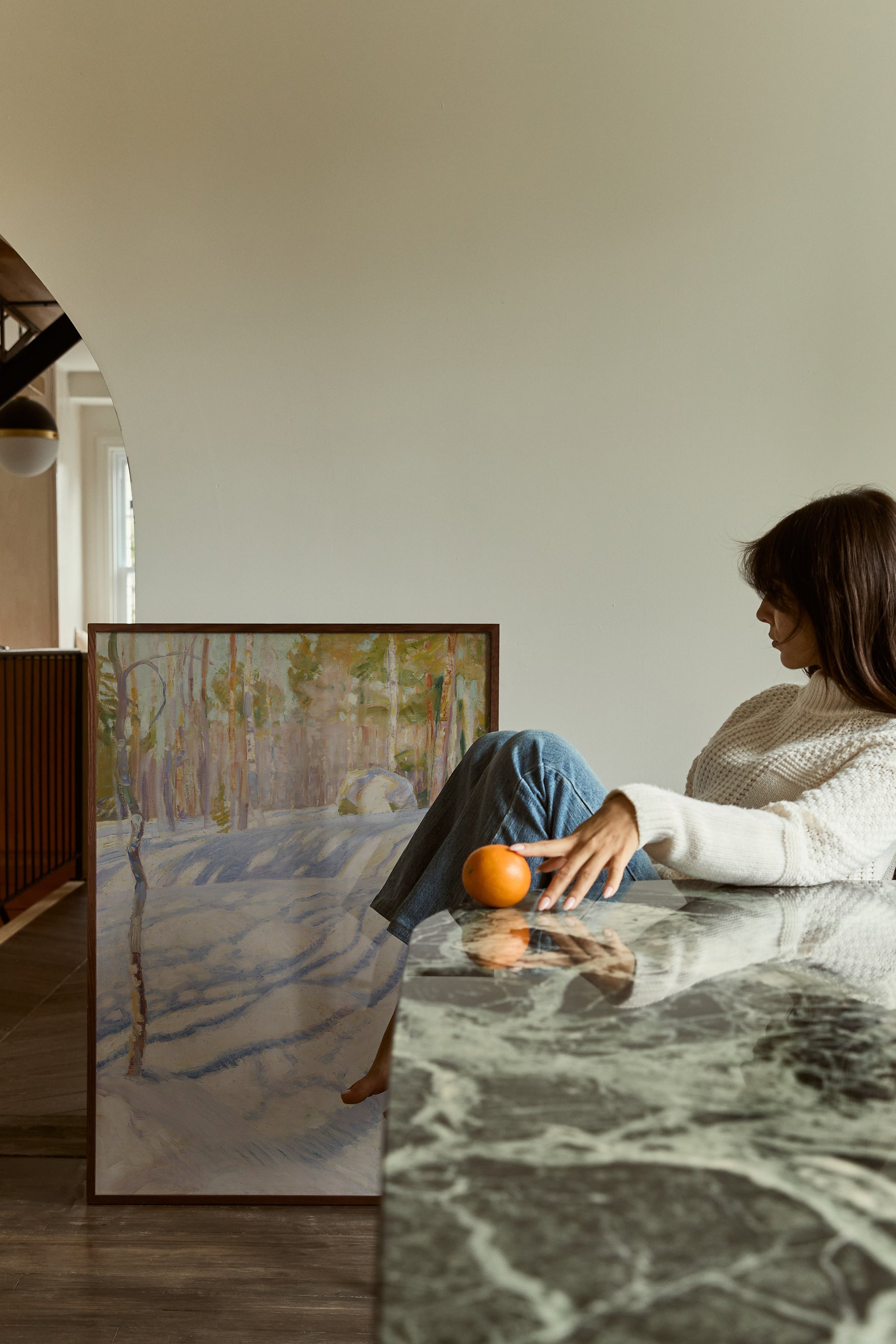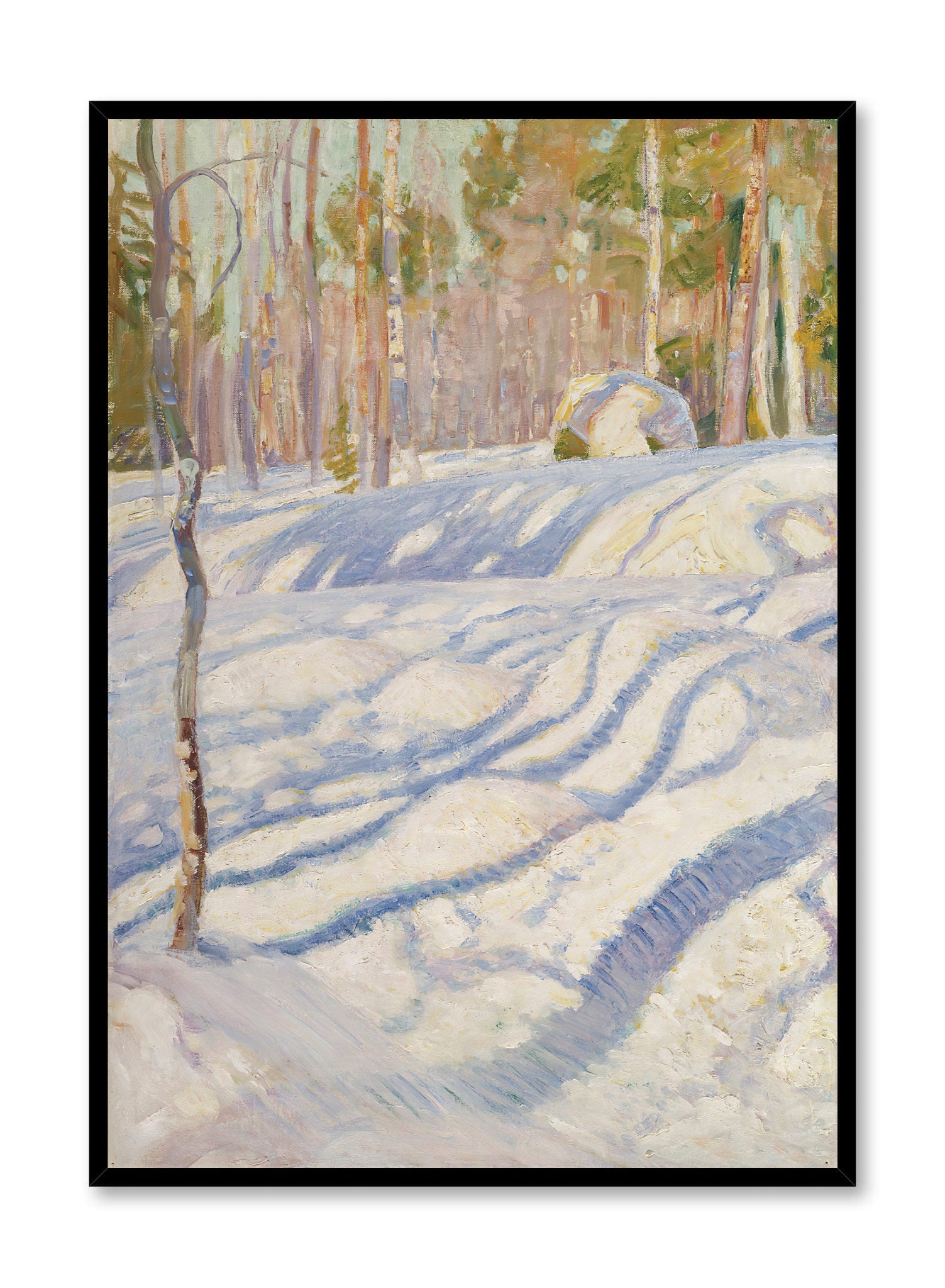 Perfect for brightening up a living space, this print is a celebration of the natural beauty of winter. Its vibrant yet tranquil atmosphere makes it an ideal choice for a cozy corner, bringing both light and warmth into your home.
